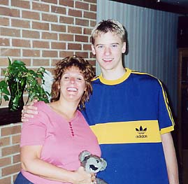 FAMILY EULOGY Delivered at Steve's Mass of the Resurrection at St. John the Baptist Catholic Church, Plymouth, Wisconsin, on October 2, 2000 by Aunt Marysue. These words were composed by Steve's family in the days after he died. Click to enlarge pictures. Introduction My first recollection of Steve as a real person was our camping trip to Black Moshanan when I gave him a bath in my green van. Then I introduced him to “real” cereal - cocoa puffs – and he was never the same after! I loved Steve and was proud of how he loved me and my family and always respected me. I’ll miss him especially when we go camping and I’ll remember him always for the fun we had at the campfire. You and the elephant will always be with me. I’ll always remember those yucky salamanders – you always made me touch them (gross!) I love you with all my heart. I sorrow for the loss of the possibility of Steve. I wish his dreams and plans had seemed more attainable and his problems less insurmountable. I will always remember the past and I will never forget what should have been. I only hope that you have found the peace you were looking for. You are loved and you will be missed. Steve – to help myself through this very difficult time the thought has dawned on me that I need to focus on a positive. I intend to constantly remind myself of one thought: Steve you are now at peace. You are up there smiling with God and I know you are waiting to greet each of us - and one day, I look forward with a happy heart when we will all be together again. I hope that your special Aunt provided you with some happy, peaceful times. I was fascinated by his drooping, bobbling baby head. Before he was born, Denise let me hold some little snail crabs she kept as pets and I was scared and dropped them. I was so scared I’d drop Steve the same way. Steve was always full of energy and I want to remember him that way – smiling, happy and full of hope for the future. Not having my own child, I cannot imagine the deepest pain of losing an only son. But I know of One who can. God suffered the giving of His only son, and it was not by accident or unknown tragedy. He did so willingly, with all his heart, so that all might have the gift of eternal salvation through our trust and faith in Him. I just pray that all of us here can believe in that truth with all our hearts, so we can all share in Jesus’ gift of “peace that transcends all understanding” as we continue to cope with missing Steve here on earth in the days and years ahead. I love all of you, my family in Christ. Godson Steve, you preferred to be called Steve the past many years, but I also will remember you when you called yourself Stephen. When you were a happy-go-lucky, bouncing, fun loving blond-haired little boy. I would come up to Sandy Lane and sleep in your bedroom and we played with all your neat stuff. You are, you were, my Godson, a responsibility I took very seriously. You now are in Heaven, and I will include Stephen, my Godson, in my prayers, and will love you forever. The thing I appreciated most about Steve was his sensitivity to the emotions and needs of others. I always will marvel at his ability to receive the greatest joy from the simplest gifts and acts of kindness of others. Steve had an inner joy and innocence that was beautiful! There was a sincere and loving heart within him. I cherish the times we spoke and exchanged our feelings. I loved to see his drawings and artwork – he was a creative and sensitive artist with much talent and potential. His “soul” was in his work. I love him and will truly miss him. My Godson was a special and beautiful young man.