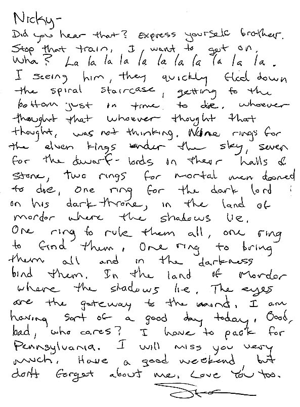 Below is a note to Nicky P. referencing Tolkien.